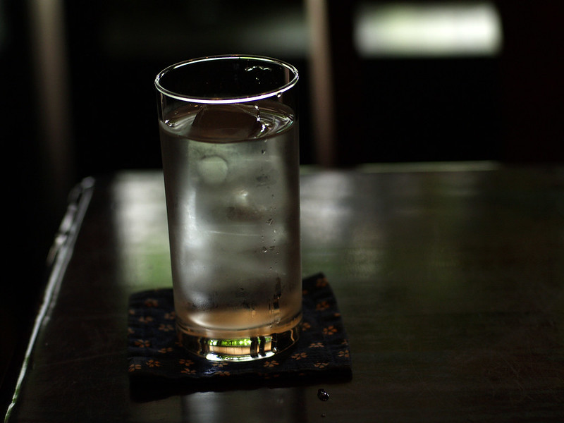 ●外の景色をグラスの底とテーブルに映して
