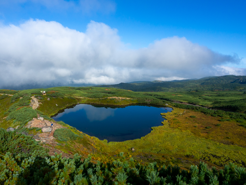 北海道の紅葉は、熊笹やハイマツのグリーン+黄色〜オレンジ〜赤の紅葉の組み合わせが特徴