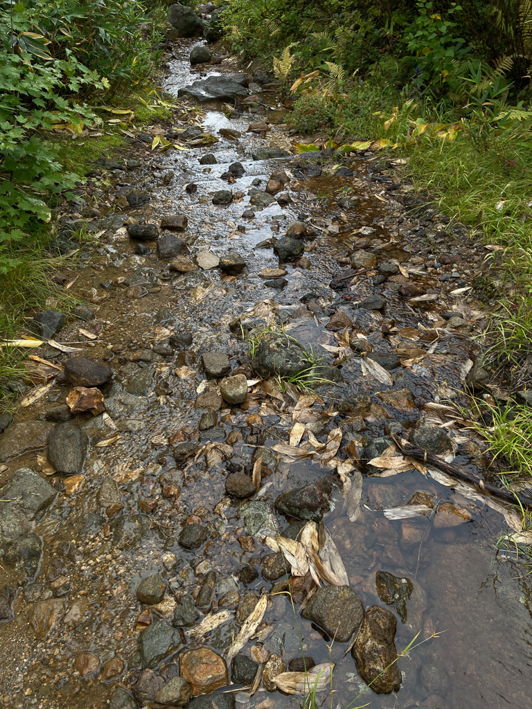 登山道は雨で川になっていた・・・