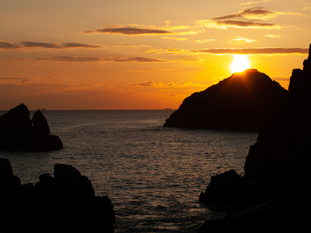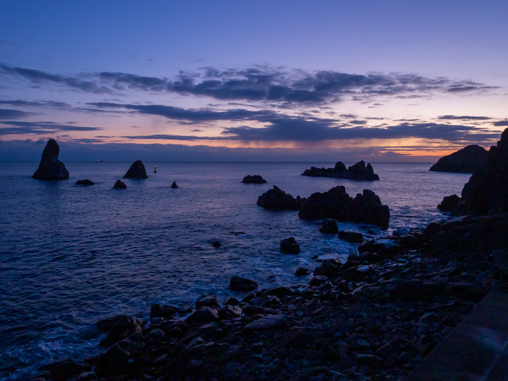 夜中に三陸海岸の”つりがね洞”まで移動して朝焼け〜日の出を撮りました