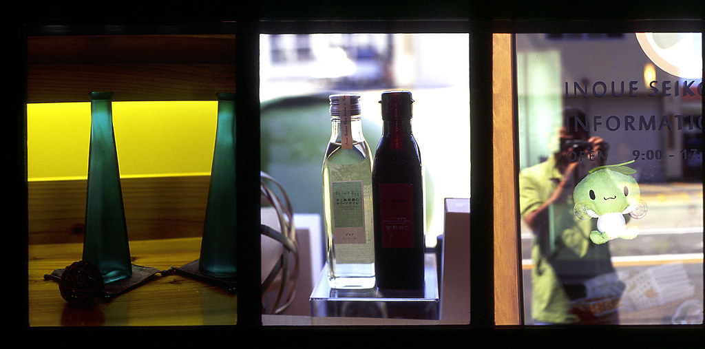 酒蔵で窓際のディスプレーを撮りまくる