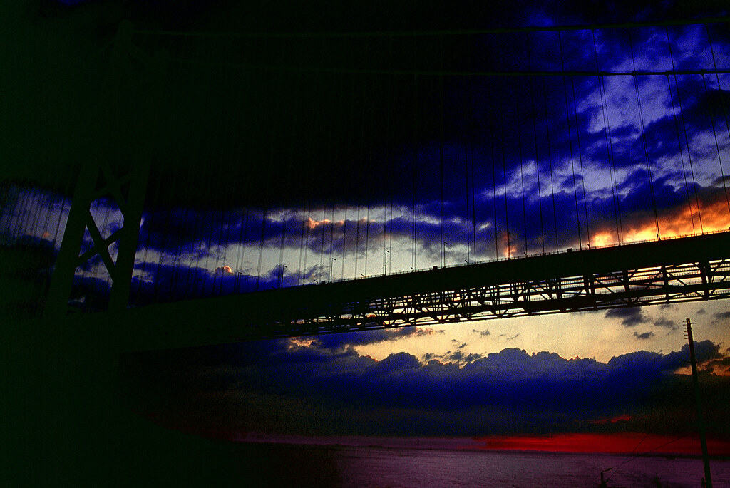 明石海峡大橋と夕焼け