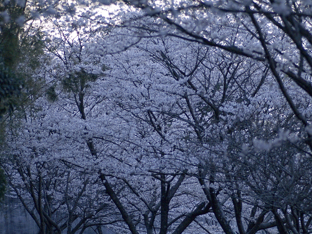 桜にあたる光はフラットですが、暗めのグリーンで周辺がさらに暗い背景を選ぶことで、