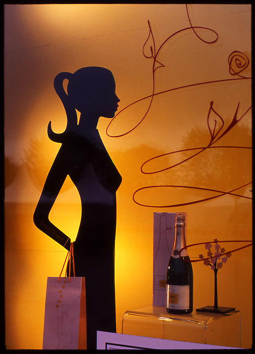 この例では、ショーケースのガラスに街の並木が映り込んでいるのですが、川面に映った街や木立を写したり、ガラスに映った街の灯りや人を入れ込んだりすることで変化のある写真を撮ることが出来ます。